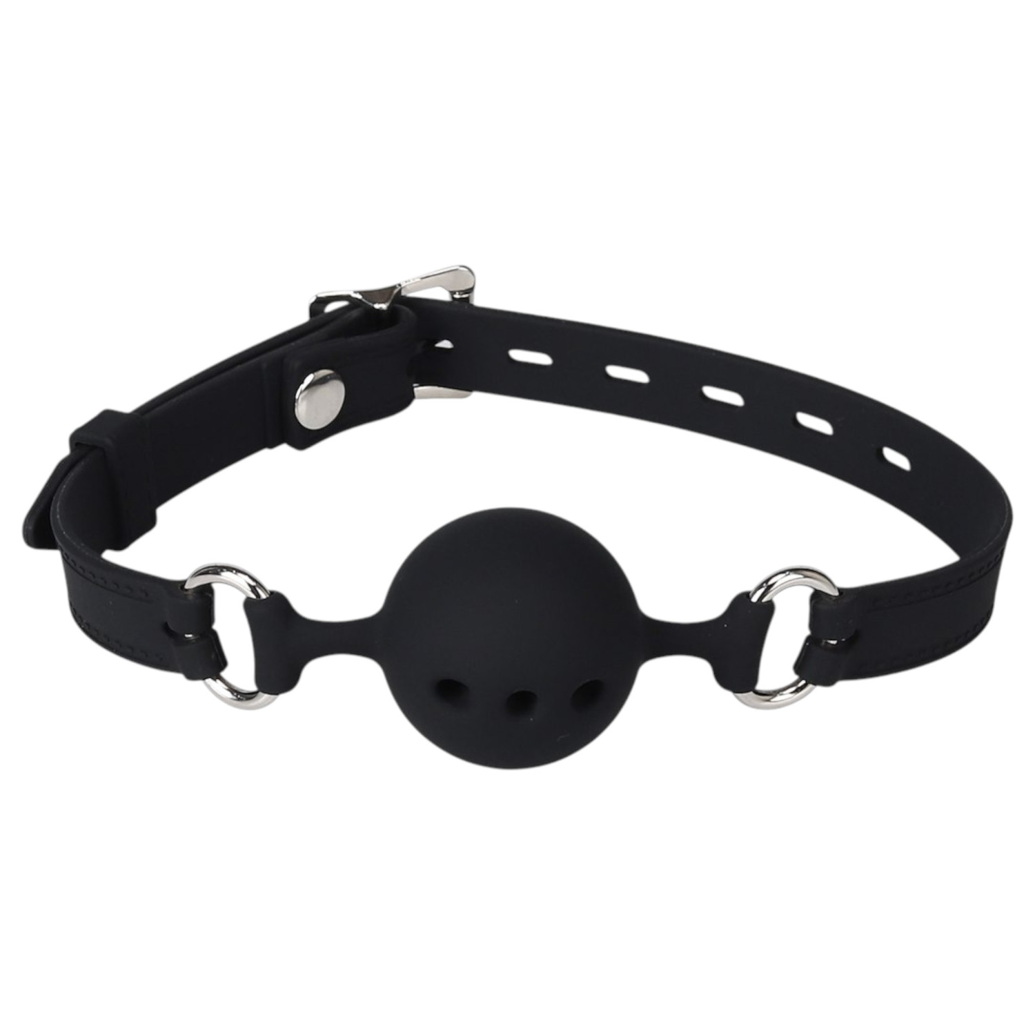 Plaats de mondknevel in de mond zodat de bal volledig aansluit en pas de riem aan tot de gewenste strakheid. Zorg ervoor dat de drager comfortabel kan ademen en dat het gebruik altijd onder veilige omstandigheden plaatsvindt.