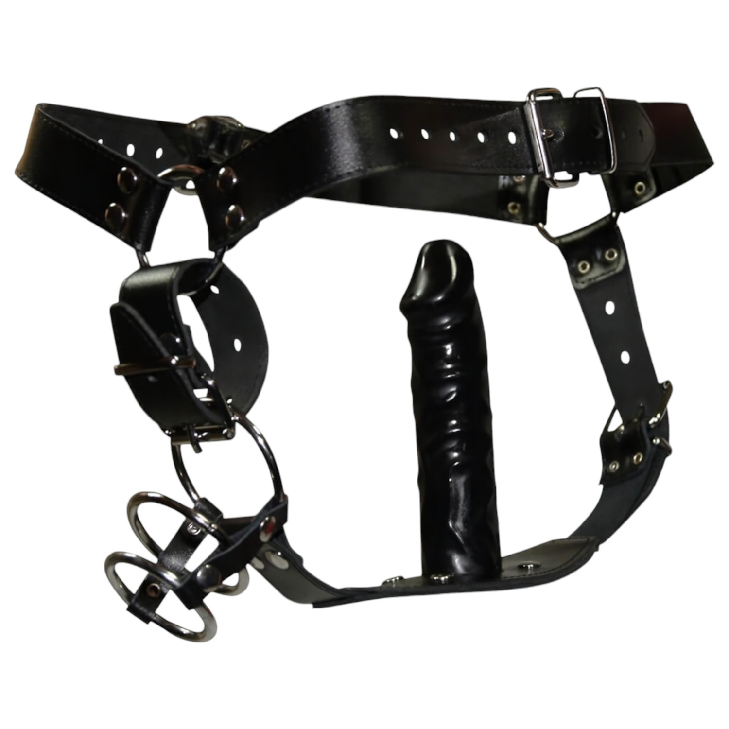 Ontdek je mannelijkheid en dominante kant met deze premium leren mannenstring, die dankzij metalen ringen en een ingebouwde anaaldildo zorgt voor extra opwinding!